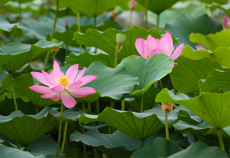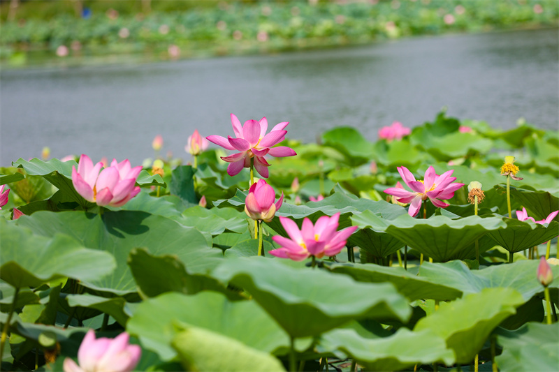 夏日里,開封西北湖濕地公園的荷花盛開,吸引市民駐足欣賞。開封+記者 石斐 攝