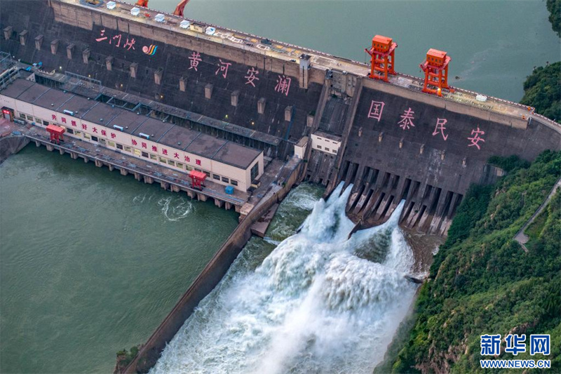 這是7月6日拍攝的三門峽水利樞紐。7月6日,三門峽水利樞紐開啟黃河2023年汛前調(diào)水調(diào)沙,自7月7日0時(shí)起按3700立方米每秒下泄,預(yù)計(jì)將為下游調(diào)水調(diào)沙補(bǔ)水6億立方米,助力沖刷小浪底水庫庫尾,為小浪底水庫調(diào)水調(diào)沙提供后續(xù)動(dòng)力。新華社發(fā)(杜杰 攝)
