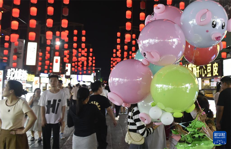 這是7月11日晚拍攝的洛陽(yáng)十字街小吃一條街夜景。新華社記者 魯鵬 攝