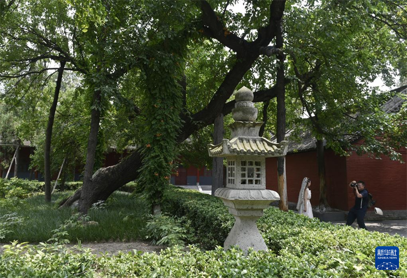 7月11日,游人在洛陽市白馬寺景區(qū)游覽拍照。新華社記者 魯鵬 攝