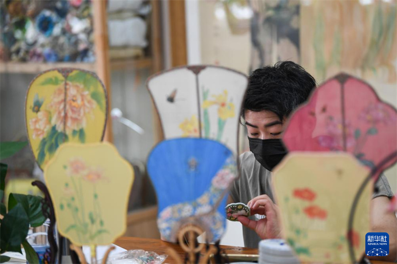 7月14日,在開封博物館,一位汴繡技師展示汴繡制作技藝。新華社記者 吳剛 攝