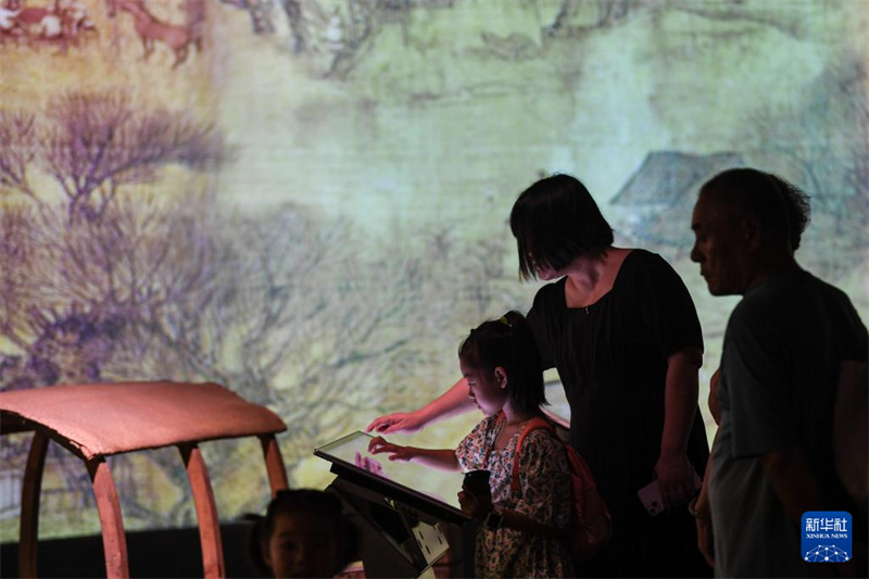 7月14日,游客在開封博物館參觀。暑期,眾多市民走進(jìn)河南省開封博物館,感受中華優(yōu)秀傳統(tǒng)文化的魅力。針對(duì)暑期青少年群體較多的情況,開封博物館精心策劃和開展主題夏令營(yíng)、研學(xué)等文化活動(dòng),豐富青少年暑期生活。新華社記者 吳剛 攝