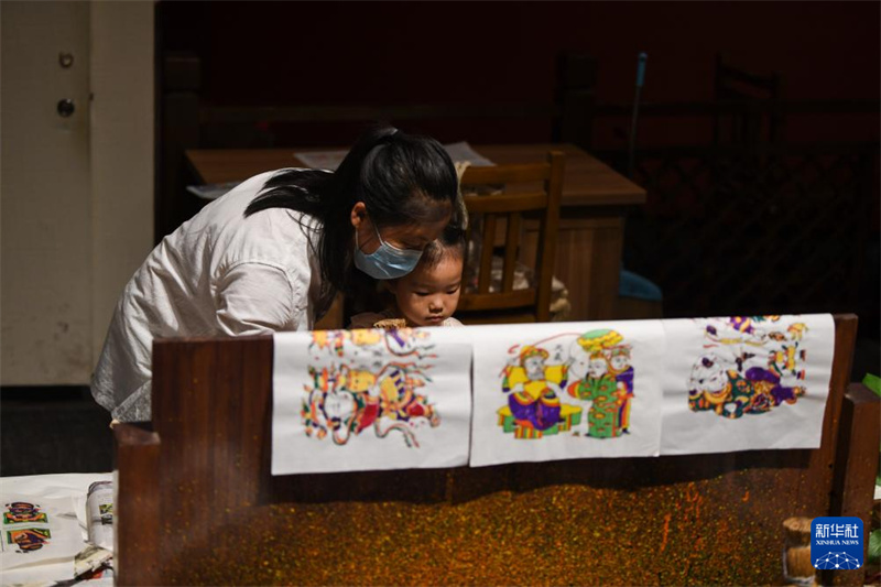 7月14日,游客在開封博物館體驗(yàn)朱仙鎮(zhèn)木版年畫手工課。新華社記者 吳剛 攝