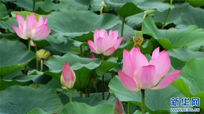 這是7月21日在河南省開封市西北湖濕地公園拍攝的荷花。開封被譽為“北方水城”,每到夏日,荷花綻放,暗香襲來,為炎炎夏日增添了詩意和清涼。新華網(wǎng)發(fā)(李俊生 攝)