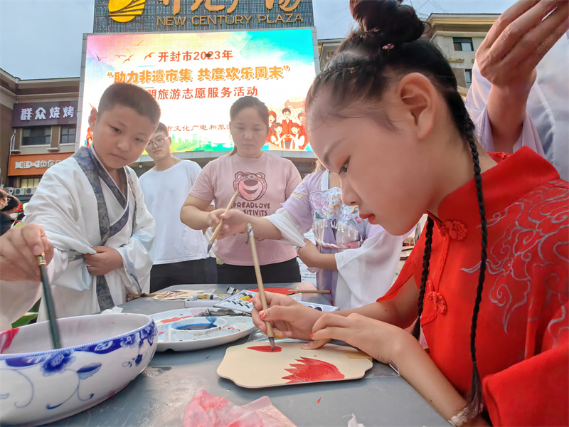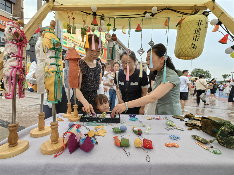 7月21日,開封開元廣場上熱鬧非凡,非遺市集各攤位前擠滿了人,各種非遺產(chǎn)品、小吃等深受市民和游客喜愛。開封+記者 石斐 攝
