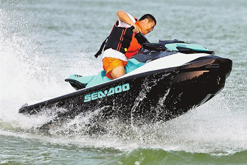 7月22日,游客在新鄉(xiāng)市鳳湖景區(qū)游玩。該景區(qū)湖水清澈,植被茂盛,暑期以來,吸引了眾多市民前來消夏。記者 鄧放 攝