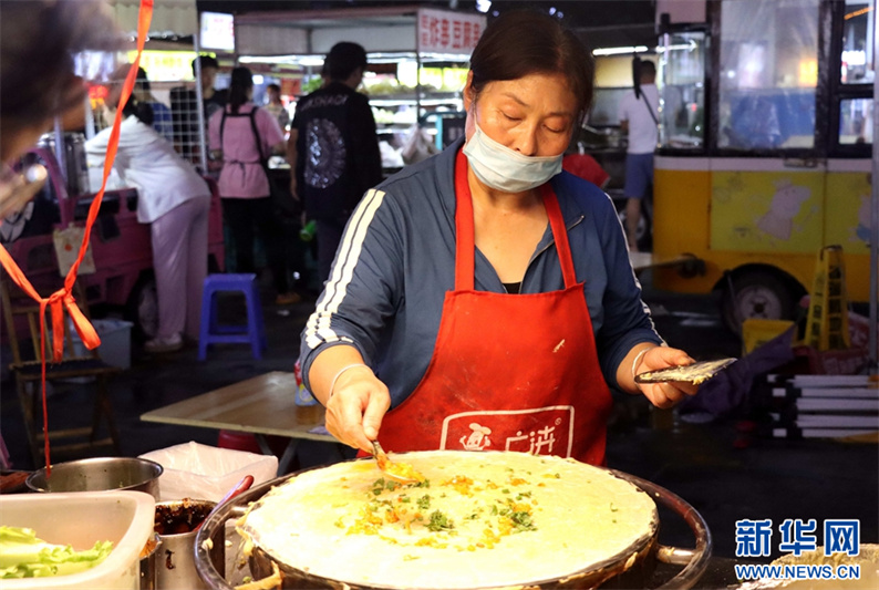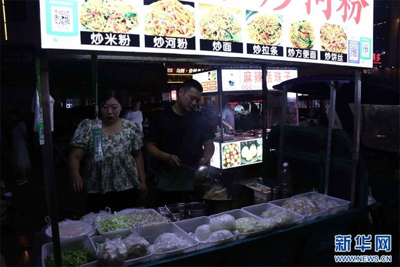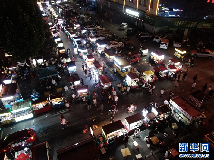 7月25日,在河南省安陽市內(nèi)黃縣萬洋廣場拍攝的夜市攤位。盛夏時節(jié),河南省安陽市內(nèi)黃縣的夜經(jīng)濟(jì)持續(xù)火熱,琳瑯滿目的地方特色小吃和文化商品,吸引了眾多市民、游客前來消費(fèi)納涼,給夜幕下的內(nèi)黃添上了幾許“煙火氣”。新華網(wǎng)發(fā)(劉肖坤 攝)