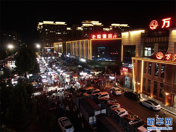 7月25日,在河南省安陽市內(nèi)黃縣拍攝的夜市場景。