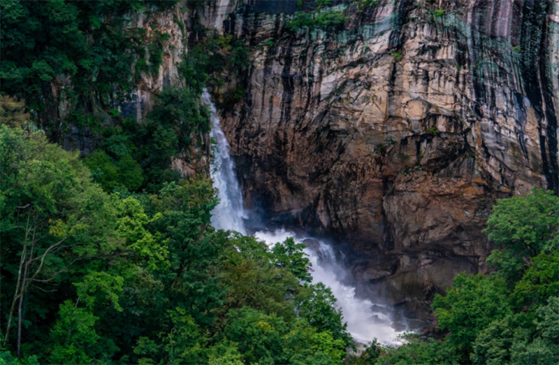高達(dá)百米落差的九龍瀑布,激流拍打著巖壁,猶如天河奔瀉般, 傾瀉在眼前。