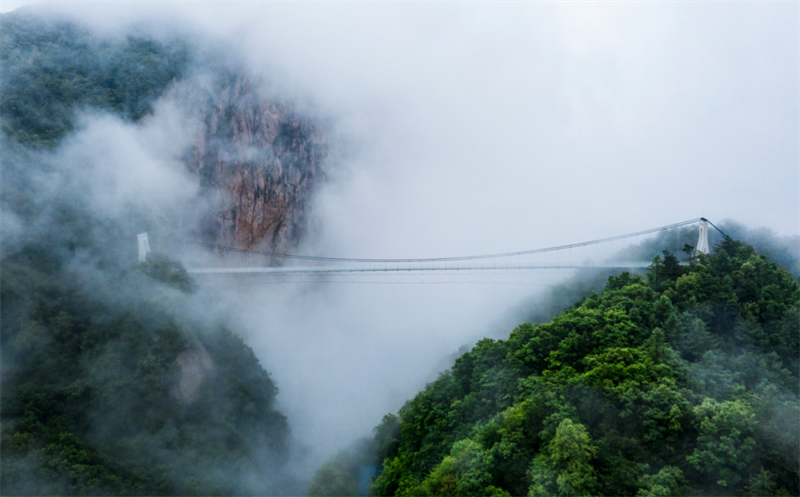 雨后云霧未散,彌漫于山谷中,與瀑布一靜一動(dòng)形成對(duì)比,繪成一副水墨版的動(dòng)態(tài)千里江山圖,引無(wú)數(shù)旅友駐足感嘆。