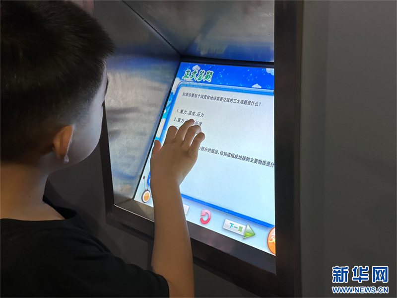 8月3日,河南自然博物館,小游客在通過答題學習自然知識。