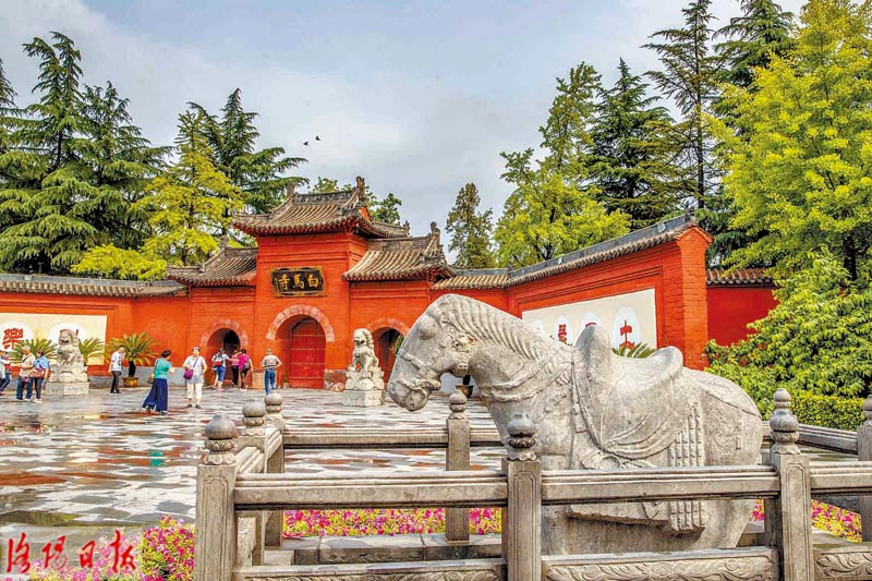 白馬寺始建于東漢永平十一年(公元68年),是佛教傳入中國后第一座官辦寺院,有中國佛教的“祖庭”和“釋源”之稱,距今已有1900多年的歷史,F(xiàn)存的古跡主要為元、明、清時(shí)所留。圖片為山門