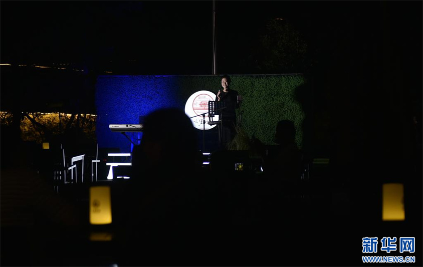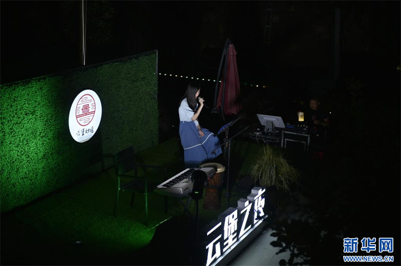 8月17日晚,歌手在河南省汝州市大峪鎮(zhèn)袁窯村萬(wàn)安西寨為游人演唱。新華社記者 魯鵬 攝