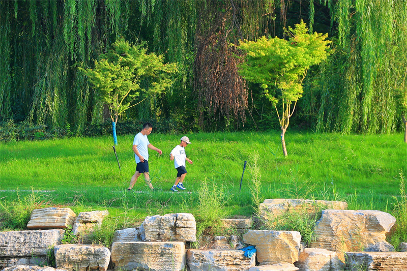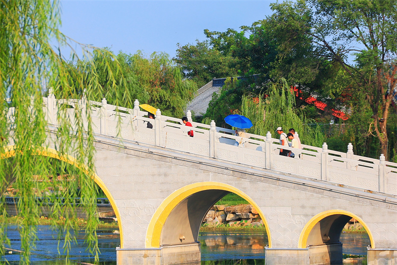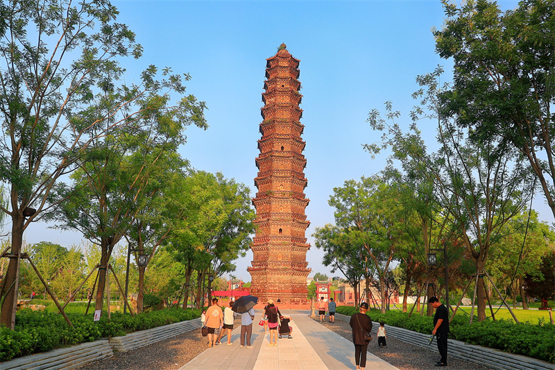 經(jīng)過(guò)一場(chǎng)降雨后,開封天氣放晴,鐵塔公園風(fēng)景優(yōu)美,吸引游客在鐵塔公園游玩賞景。開封+記者李浩8月21日攝