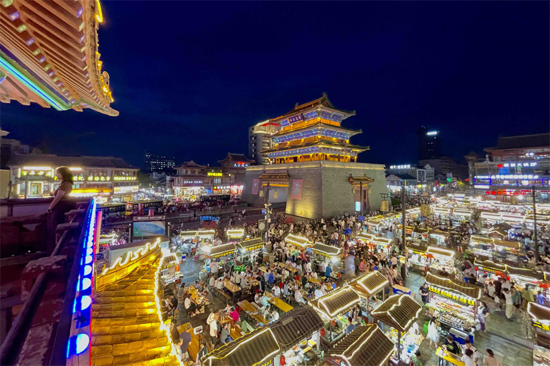 8月25日傍晚,天氣涼爽,鼓樓夜市熱鬧非凡。人們前來逛夜市、品美食,給古城帶來濃濃煙火氣。開封+記者 姜菡 攝