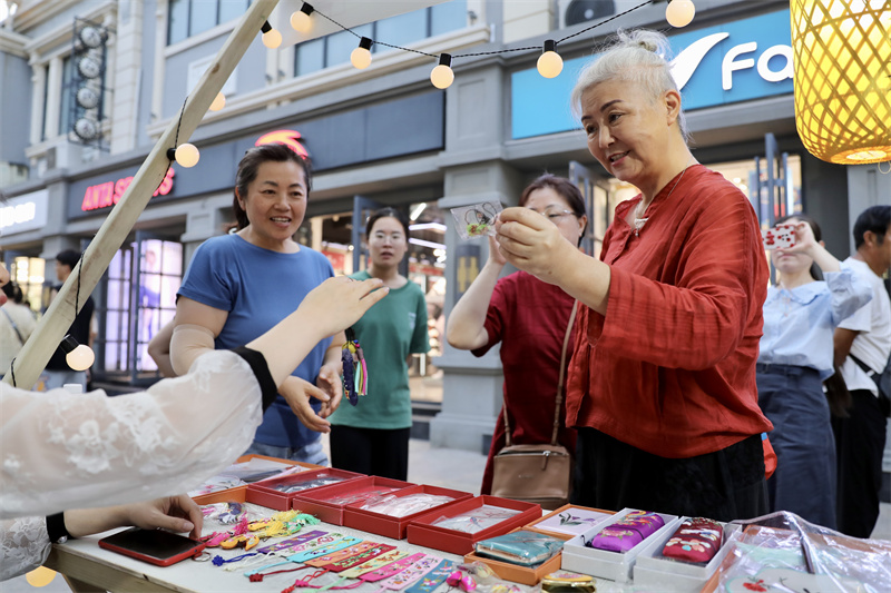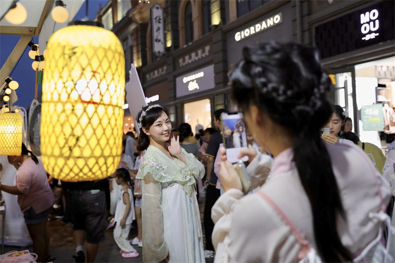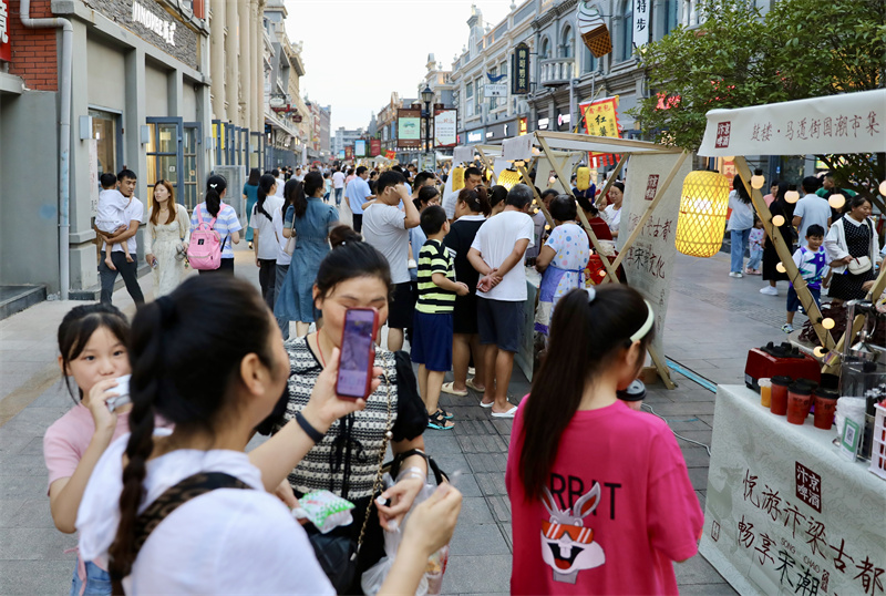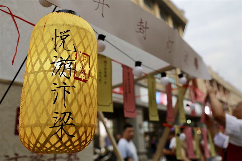 8月25日,第五期開(kāi)封老字號(hào)國(guó)風(fēng)市集在馬道街舉辦,市集現(xiàn)場(chǎng)市民和游客品美食、猜燈謎,暢享“宋潮文化”。開(kāi)封+記者 姜菡 攝