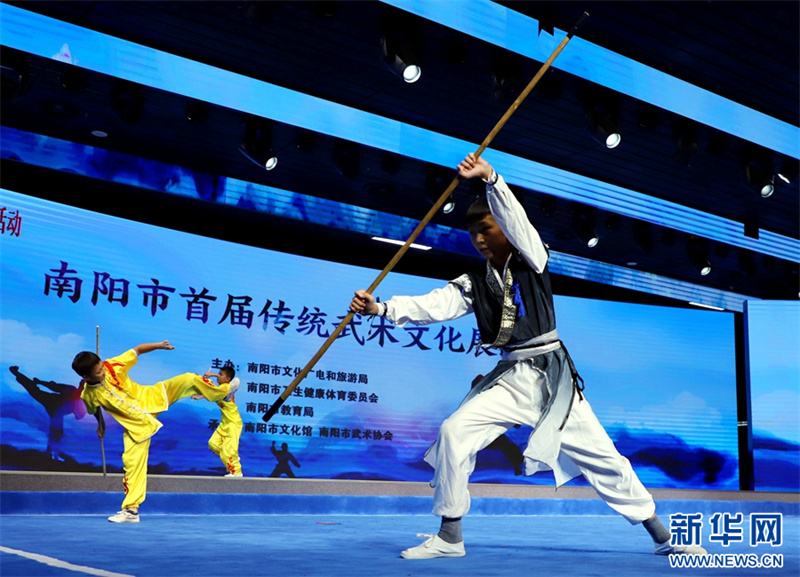 8月28日,河南省南陽市文化館百姓劇場,參賽選手在進行武術表演。8月28日,河南省南陽市首屆傳統(tǒng)武術文化展演活動在南陽市文化館舉辦。此次展演活動旨在挖掘傳統(tǒng)武術精華,弘揚中華武術文化。新華網(wǎng)發(fā)(高嵩 攝)