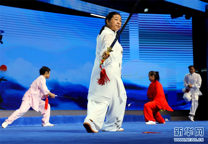8月28日,河南省南陽市文化館百姓劇場,參賽選手在進行武術表演。