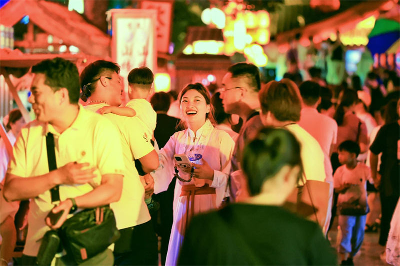 夜幕降臨,開封市景區(qū)燈火輝煌、熱鬧非凡,游客穿梭其中,欣賞夜幕下的美景。開封+記者李浩 攝