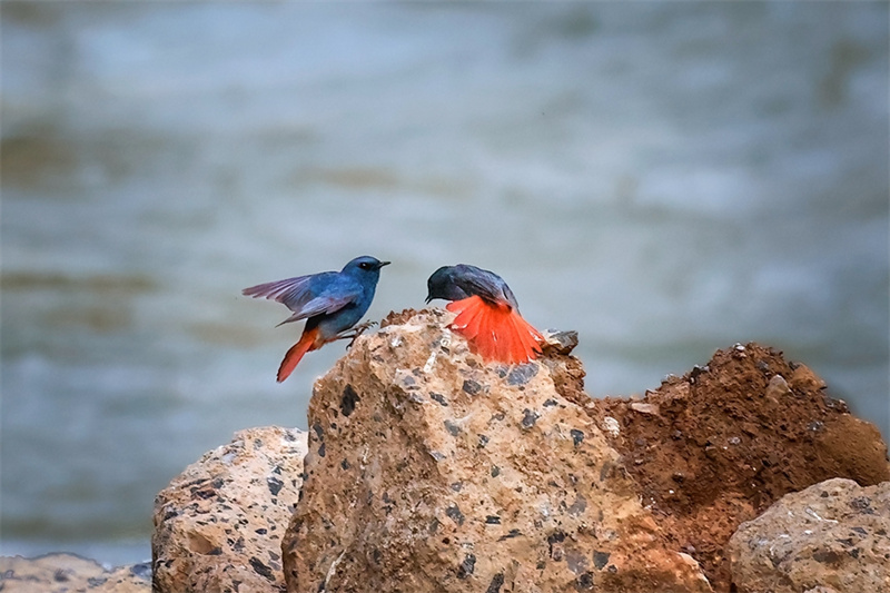 紅尾水鴝翹首以盼同伴的到來。 牛文堂攝