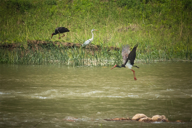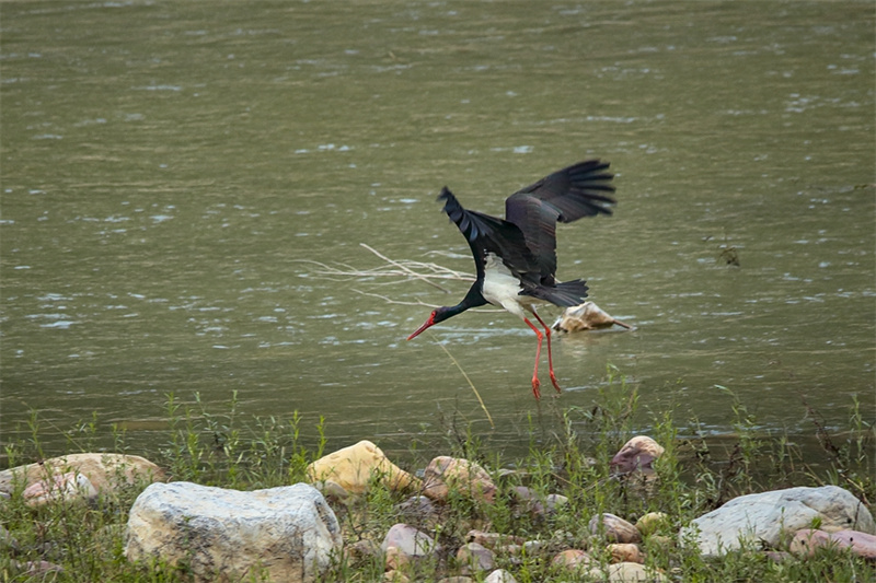 漳河峽谷國家濕地公園位于河南省安陽市殷都區(qū)都里鎮(zhèn),天藍水清,動物資源豐富,是候鳥遷徙的重要通道。近年來,漳河峽谷國家濕地公園管委會通過保護優(yōu)先、嚴格管理、系統(tǒng)治理、科學(xué)修復(fù)等一系列措施,共恢復(fù)濕地1500余畝。目前,漳河濕地及其周邊區(qū)域內(nèi)脊椎動物共有5綱31目82科261種,鳥類數(shù)量還在明顯增加,這里成為了鳥類棲息的樂園。黑鸛振翅飛舞。段獻忠攝