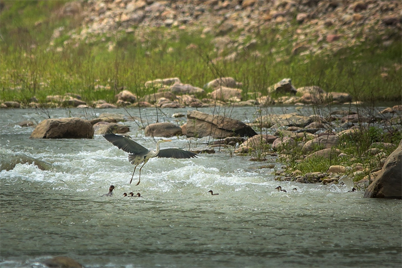 水中綠洲嬌艷,蒼鷺和野鴨子們躲藏戲水。牛文堂攝
