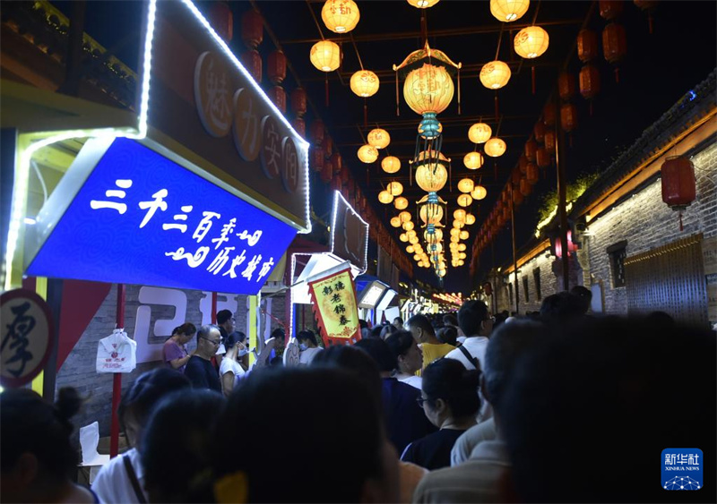 9月7日晚在安陽古城縣前街拍攝的“古韻鎏光·燈火安陽”沉浸式夜游活動現(xiàn)場。新華社記者 魯鵬 攝