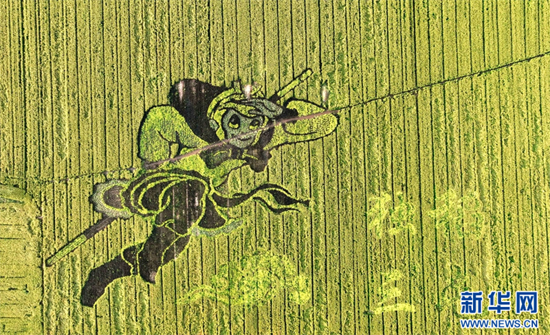 9月9日,河南省汝陽縣三屯鎮(zhèn)東保村,稻田里的“齊天大圣”圖案。