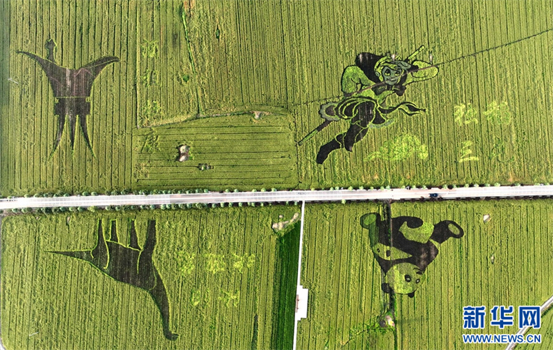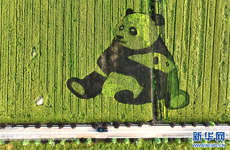 9月9日,河南省汝陽縣三屯鎮(zhèn)東保村,稻田里的大熊貓圖案。