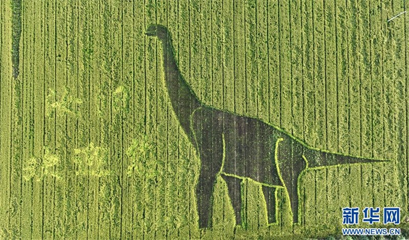 9月9日,河南省汝陽縣三屯鎮(zhèn)東保村,稻田里的“恐龍”圖案。