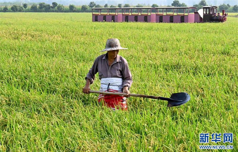 9月9日,河南省汝陽縣三屯鎮(zhèn)東保村,在稻田里行駛的小火車。