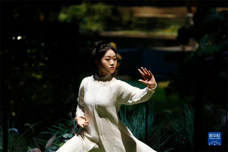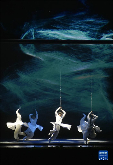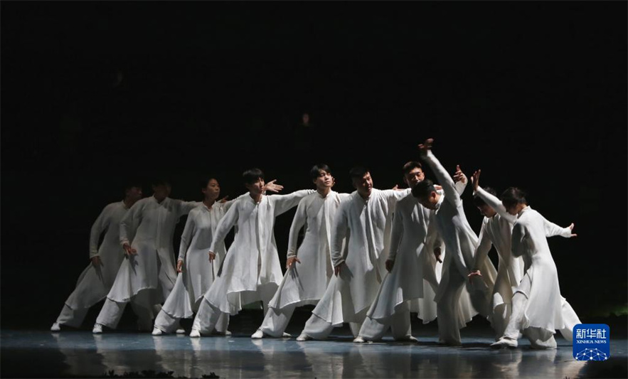 這是9月14日拍攝的《印象·太極》演出現(xiàn)場。河南省焦作市溫縣陳家溝是太極拳的發(fā)源地。位于陳家溝的太極全域劇場采用實景與多媒體相結(jié)合的方式,圍繞360度旋轉(zhuǎn)舞臺,打造沉浸式體驗演出《印象·太極》,讓觀眾在動靜之間感受太極文化。新華社記者 魯鵬 攝