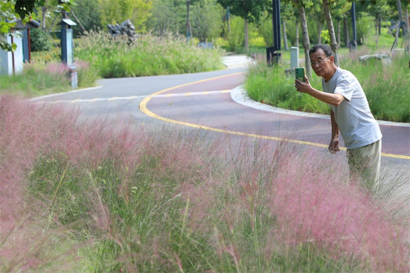 近日,開封黑崗口調蓄水庫的粉黛亂子草盛開,遠遠看去像一片粉色的海洋,吸引市民駐足拍照。開封+記者姜菡9月15日攝