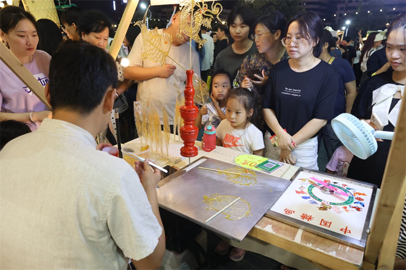 9月15日晚,開封開元廣場“歡樂周末·非遺市集”活動現(xiàn)場人頭攢動、熱鬧非凡,各色非遺項目集體亮相,深受市民、游客好評。開封+記者 袁洋 攝