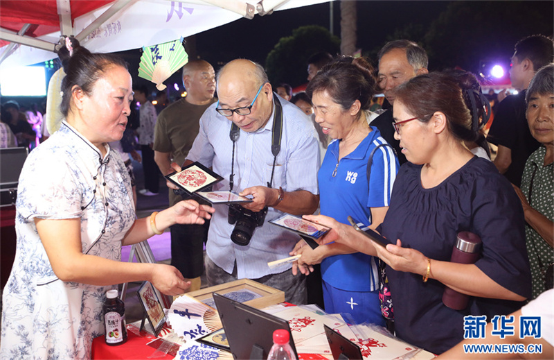 9月16日晚,尉氏縣人民廣場(chǎng),游客在選購(gòu)剪紙。