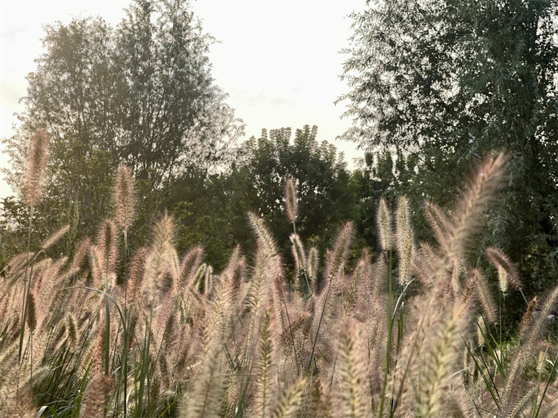 9月20日,開封黑崗口調(diào)蓄水庫內(nèi)綠中泛黃的狼尾草在秋陽的映照下隨風(fēng)搖曳生姿,妝點古城的秋天。開封+記者 姜菡 攝