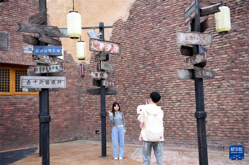 10月6日,游客在“只有河南·戲劇幻城”內(nèi)游玩。中秋、國慶長假期間,位于河南省鄭州市中牟縣的“只有河南·戲劇幻城”景區(qū)吸引來自全國各地的游客參觀游玩。新華社記者 郝源 攝