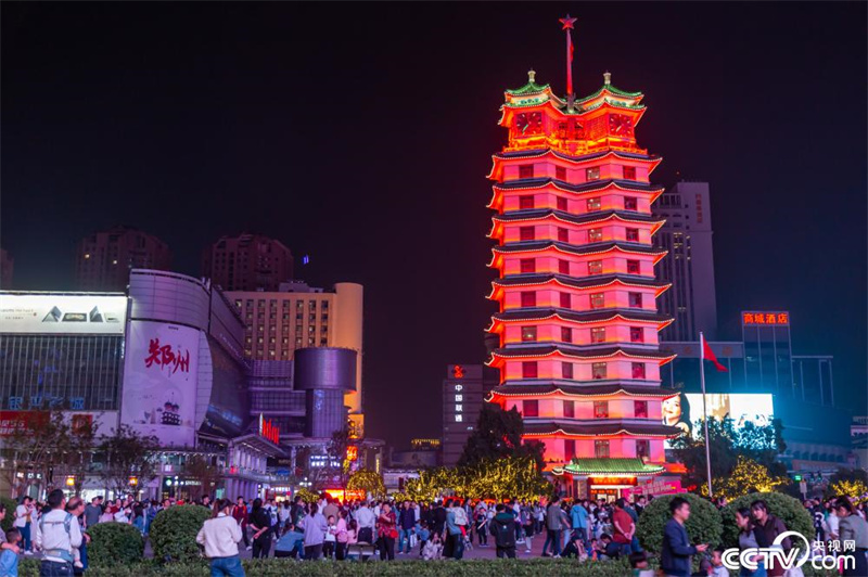 國(guó)慶期間,鄭州二七紀(jì)念塔廣場(chǎng)燈火璀璨,吸引大批游客前來(lái)游覽。