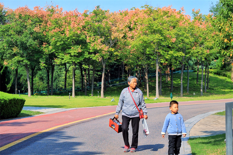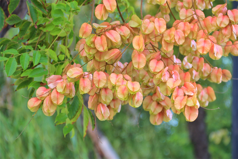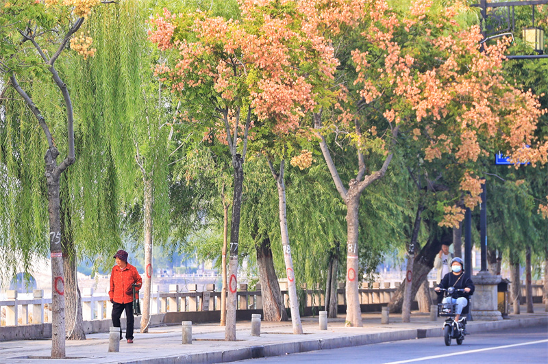 進(jìn)入秋季,開(kāi)封市的欒樹(shù)進(jìn)入觀賞期,紅色的欒樹(shù)果實(shí)掛滿枝頭,令人賞心悅目。開(kāi)封+記者李浩10月10日攝