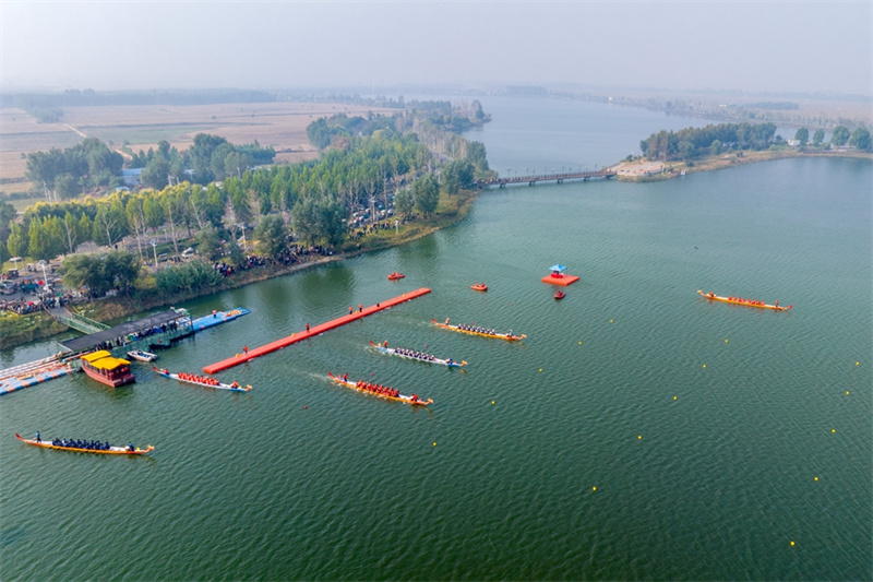 10月14日,河南省安陽(yáng)市滑縣千翠湖,河南省第十一屆中華軒轅龍舟大賽總決賽暨滑縣首屆全民龍舟大賽現(xiàn)場(chǎng)。