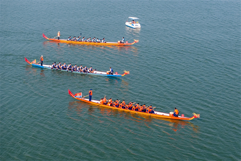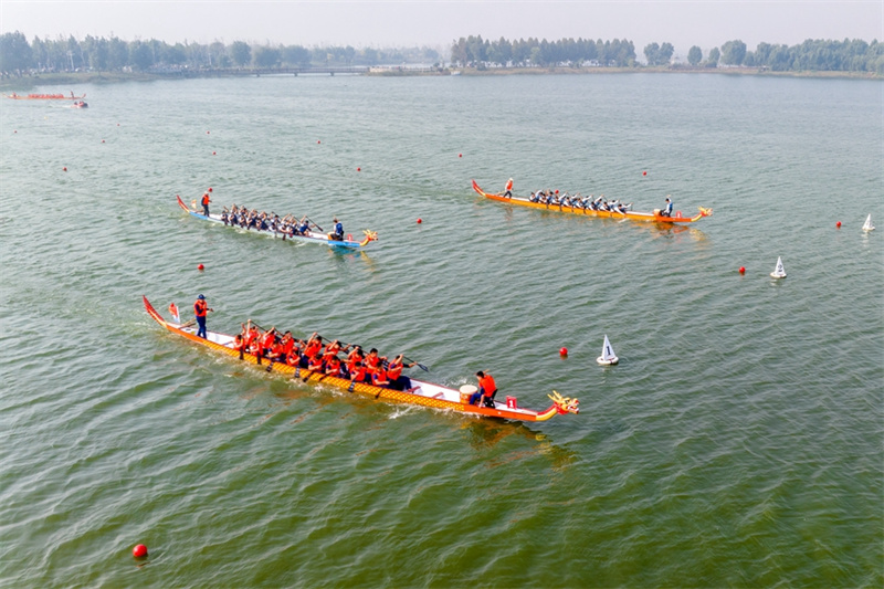 10月14日,河南省安陽(yáng)市滑縣千翠湖,河南省第十一屆中華軒轅龍舟大賽總決賽暨滑縣首屆全民龍舟大賽現(xiàn)場(chǎng)。10月14日,河南省第十一屆中華軒轅龍舟大賽總決賽暨滑縣首屆全民龍舟大賽拉開(kāi)帷幕,來(lái)自全省各地市的20余支隊(duì)伍參賽。在如畫般美麗的滑縣千翠湖上,隊(duì)員們奮勇?tīng)?zhēng)先,向觀眾們展示中國(guó)龍舟文化的魅力。新華網(wǎng)發(fā)(王子瑞 攝)