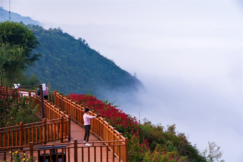 黃河云海,美不勝收。10月8日,靈寶市函谷關(guān)鎮(zhèn)東寨村,層層云海包裹著黃河觀景臺,翻涌升騰;從空中俯瞰,云霧繚繞,滾滾不息的黃河和兩岸農(nóng)田、生態(tài)廊道時隱時現(xiàn),構(gòu)成了一幅壯麗的奇觀勝景。