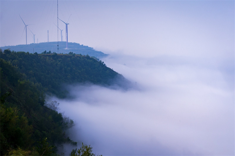 靈寶市氣象局局長范學(xué)林介紹,云海的形成主要是由于前期降雨較多,近地面水汽充足,達到飽和狀態(tài),加上夜間天氣晴朗無風(fēng),近地面輻射冷卻,空氣降溫形成了云頂高度低于山頂?shù)脑旗F。