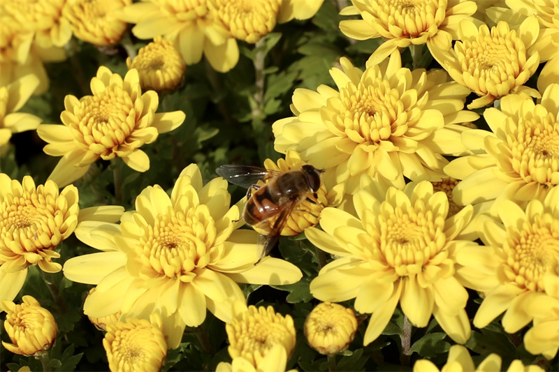 近日,開封市街頭、景區(qū)的菊花競相綻放,朵朵菊花散發(fā)出陣陣幽香,引得蜜蜂、蝴蝶縈繞花間。開封+記者 姜菡 10月30日攝