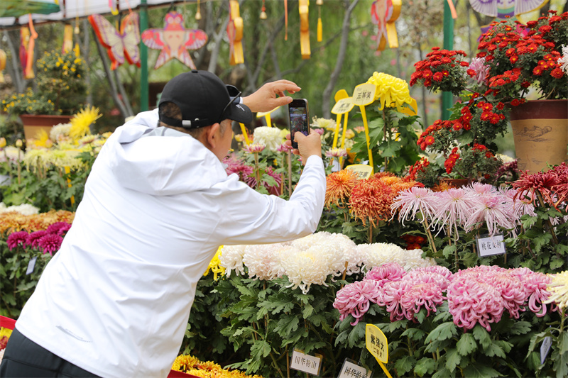 11月3日,游客在賞菊游玩。眼下,開封市公園景點(diǎn)、街頭廣場(chǎng)菊花盛開,滿城菊香,吸引眾多游客前來(lái)賞菊游玩、拍照留念。開封+記者 姜菡 攝