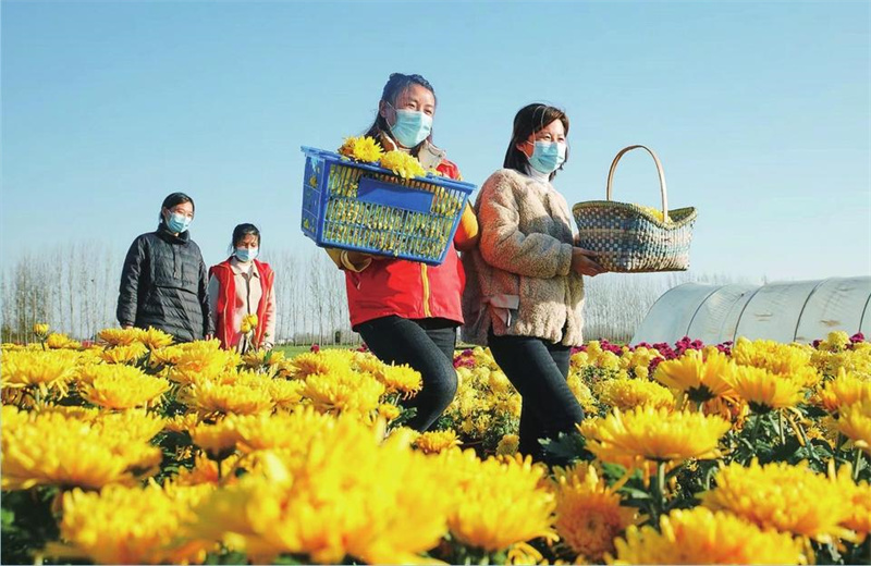 11月6日,在尉氏縣水坡鎮(zhèn)楊店村,游客在采摘菊花。近年來,該鎮(zhèn)大力發(fā)展生態(tài)休閑觀光農(nóng)業(yè),通過打造農(nóng)文旅融合綜合體,助農(nóng)增收。 李新義 攝