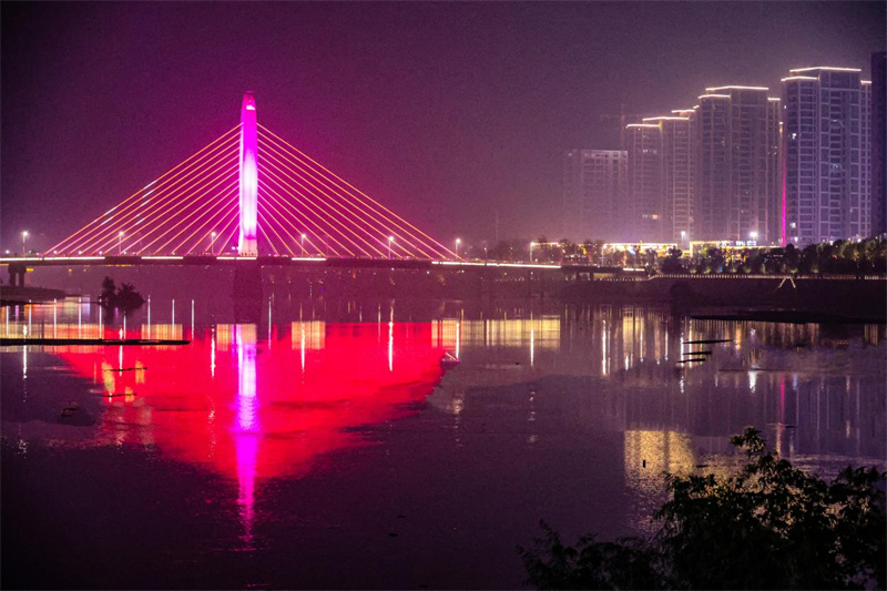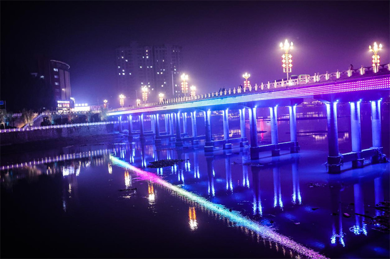 地處大別山門戶的潢川縣,在加大對基礎(chǔ)設(shè)施建設(shè)投入的同時,在小潢河兩岸3.3公里長的綠化帶上精心打造夜景燈飾景觀,努力提升城市品位。如今,夜幕降臨后的潢川城變得更加秀麗迷人,熠熠生輝。漫步小潢河兩岸,可以看到許多市民和游客在悠閑地散步。五彩潢川充滿人間煙火氣,讓人感受到生活的美好。(陳柏松/文圖)