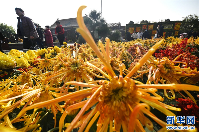 11月12日,游客在河南省開封市龍亭公園游園賞菊。立冬時(shí)節(jié),河南省開封市公園景點(diǎn)和街頭大量菊花依然傲寒綻放,吸引不少游客前來賞菊。新華網(wǎng)發(fā)(李俊生 攝)