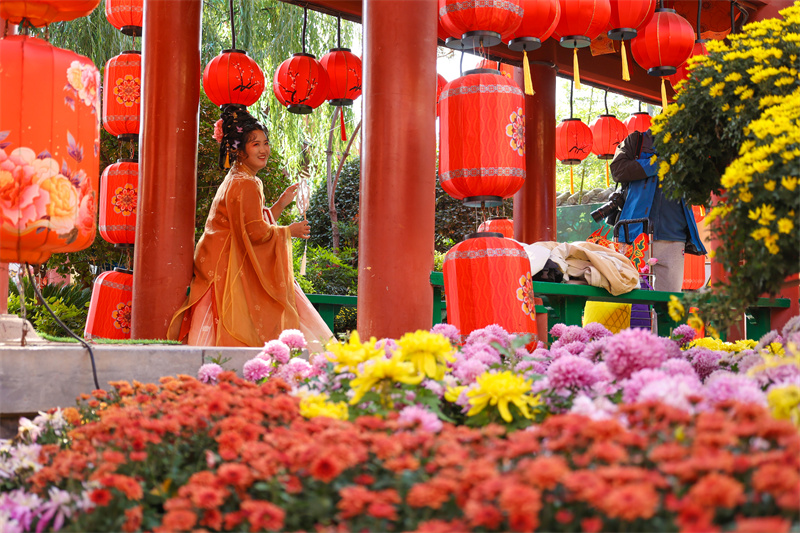 11月13日,開封市天氣晴好,許多游客來到景區(qū)游玩、賞菊,樂享冬日好時光。 開封+記者 石斐 攝