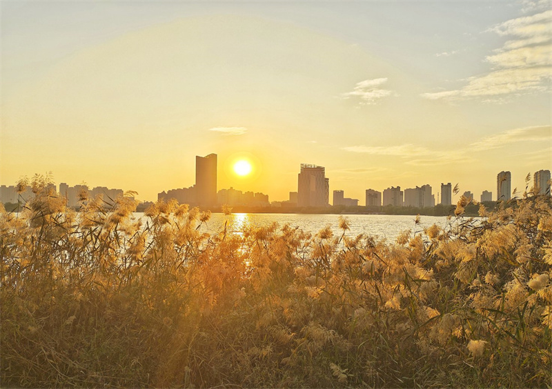 11月13日傍晚,在夕陽余暉的照射下,蘆葦花被染上了金黃色的光輝,隨風(fēng)搖曳閃爍著光芒,充滿了冬季的韻味。開封+記者 李浩 攝